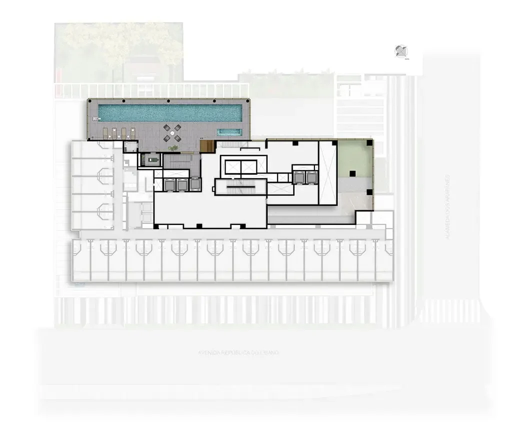 Com assinaturas de Pablo Slemenson, Fernanda Marques e Alex Hanazaki, o projeto nasce na Avenida República do Líbano com Alameda dos Arapanés para enquadrar a paisagem de cartão postal da cidade de São Paulo na janela de casa.